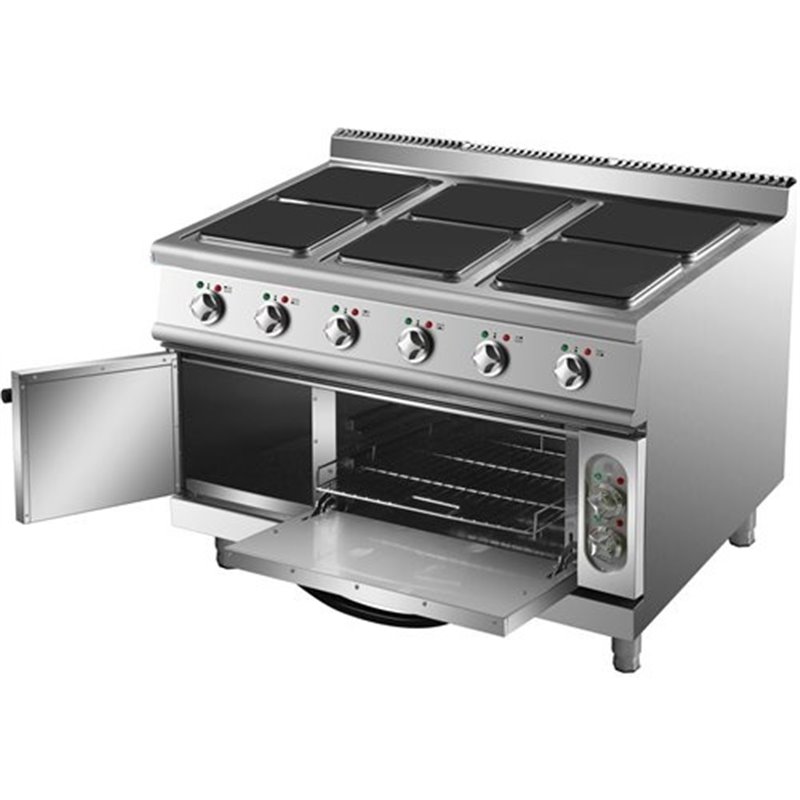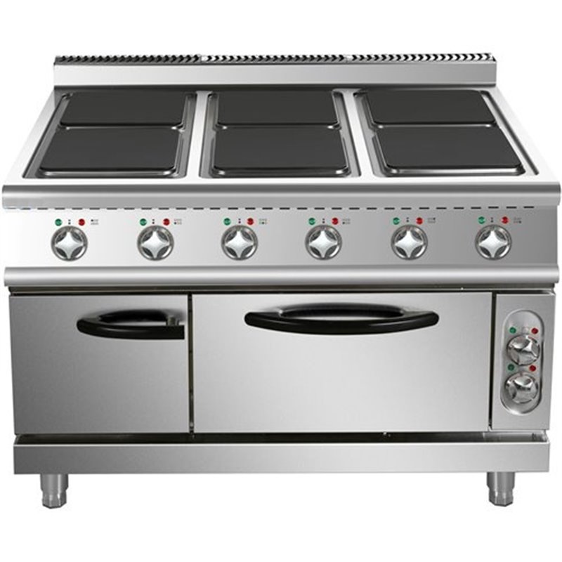 Commercial Electric Cooker 6 Square Burners with Electric Oven 24kW+4.8kW 900mm Depth | Stalwart DA-HSQ962B