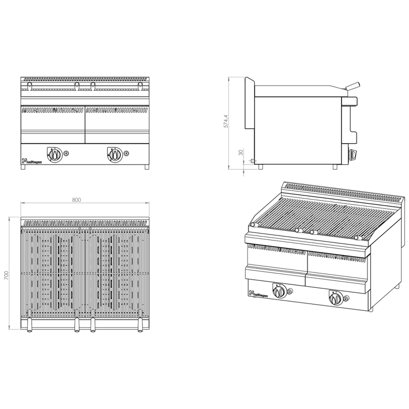 Professional Vapour Grill Gas 6 burners 22kW | Stalwart DA-VG8070GT
