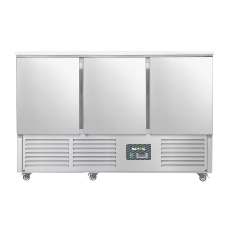 The Hamoki Refrigerated Salad Counters are versatile units suitable for commercial kitchens and food service establishments. Designed with a various number of doors and one adjustable height shelf per door, to provide a convenient and efficient workspace while simultaneously offering refrigerated storage for perishable ingredients. These innovative counters are designed to enhance efficiency and freshness in food production.