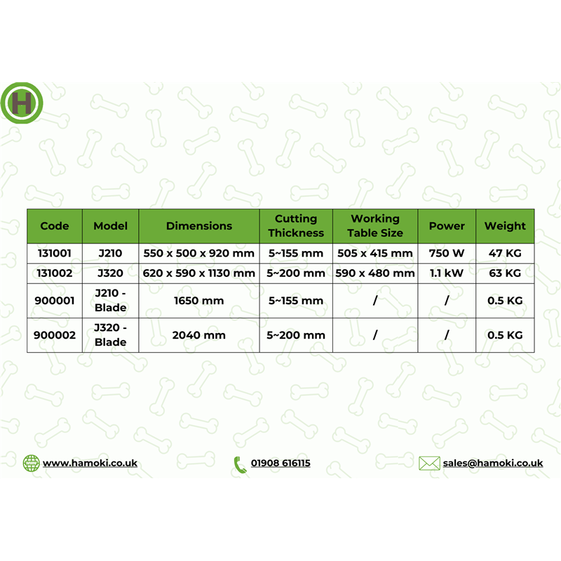 The Hamoki Bone Saw is made from cast anodised aluminium, resulting in a shiny and stylish design, whilst also ensuring that the machine stays hygienic and rustproof. It is simple and safe to use, whilst its sturdy and robust frame means it is capable of standing alone. It features a counter, meat pusher and stainless steel server and overall makes light work of cleaning due to all electrical parts being fully protected whilst the blade, upper pulley and its support are easily detachable.