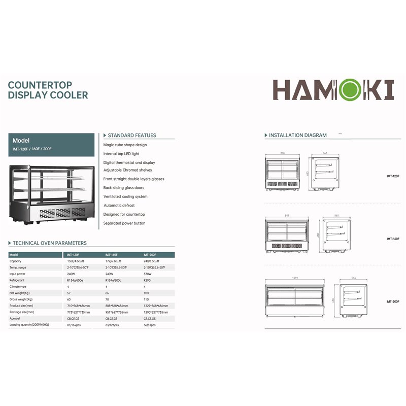 The Hamoki Countertop Display Coolers are versatile and stylish equipment for any food service establishment, such as restaurants, delis, cafeterias, bakeries or even hotels. These compact countertop commercial refrigeration units are designed with back sliding glass doors, and all 4 sides in glass, providing customers and staff easy viewing of the selection available, making it a convenient and enticing way to showcase your menu offerings while protecting from contaminants.