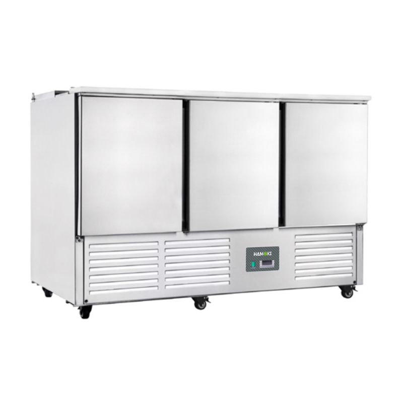 The Hamoki Refrigerated Salad Counters are versatile units suitable for commercial kitchens and food service establishments. Designed with a various number of doors and one adjustable height shelf per door, to provide a convenient and efficient workspace while simultaneously offering refrigerated storage for perishable ingredients. These innovative counters are designed to enhance efficiency and freshness in food production.
