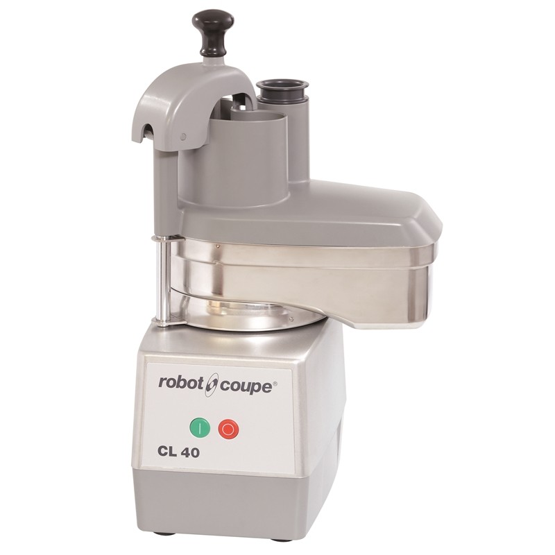 The Robot Coupe CL 40 stainless steel vegetable preparation bowl and ABS hopper. Motor rated 230v/500w with speed of 375rpm.