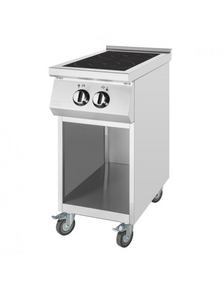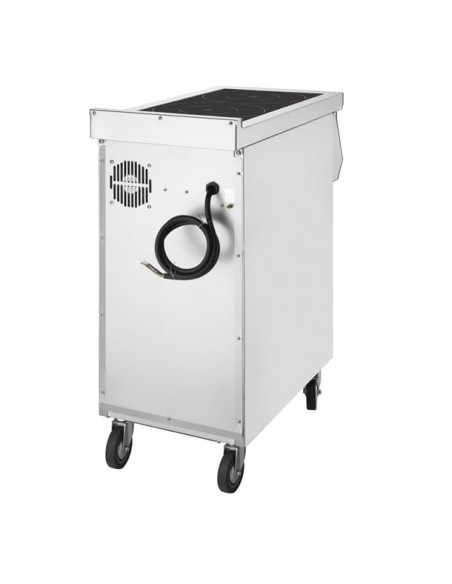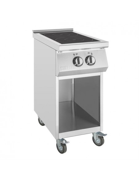 Once service is over, the unit is effortless to clean, with strong stainless steel and toughened ceramic glass construction. And thanks to the built-in stand, the hob is set to an ergonomic work height, whilst also including handy storage space below. The stand also includes handy braked castors, allowing you to reposition the unit for cleaning or maintenance.