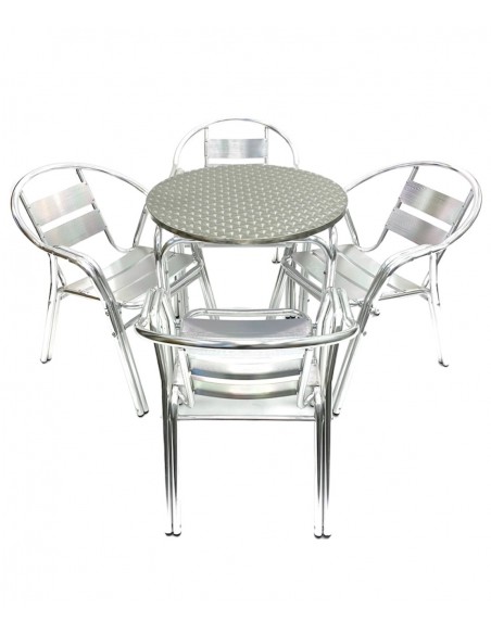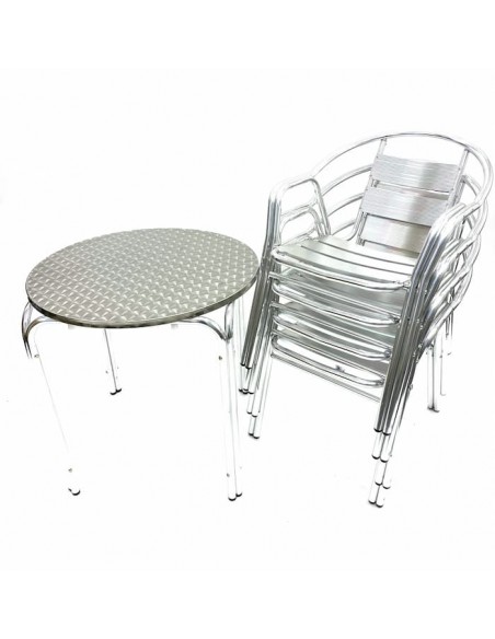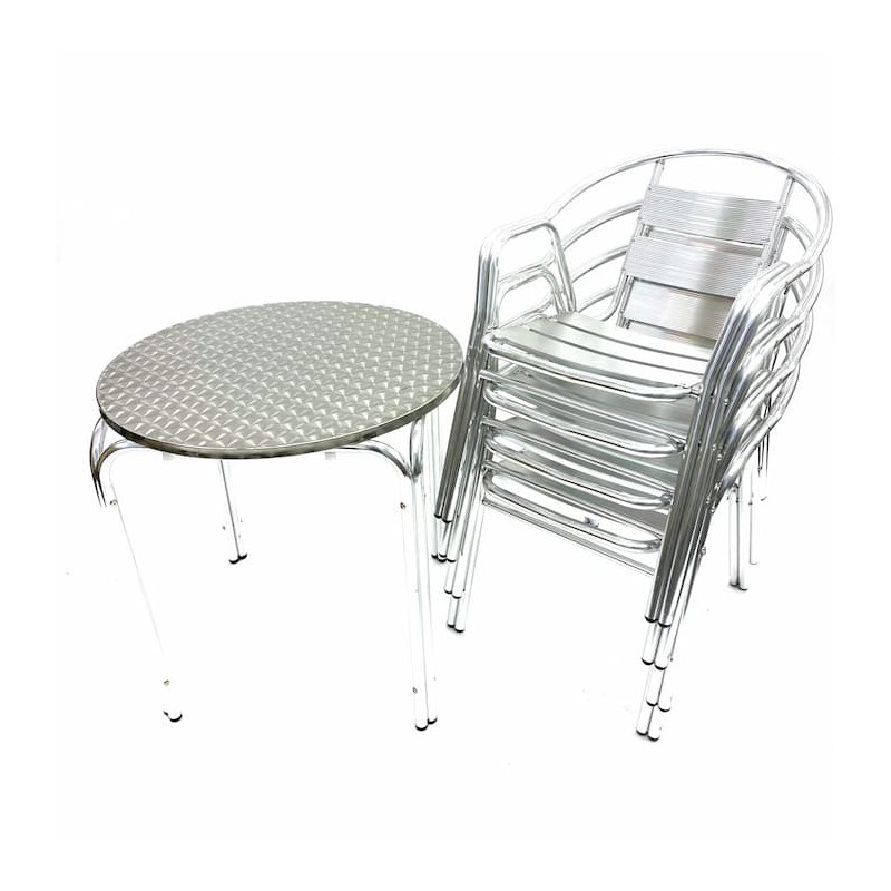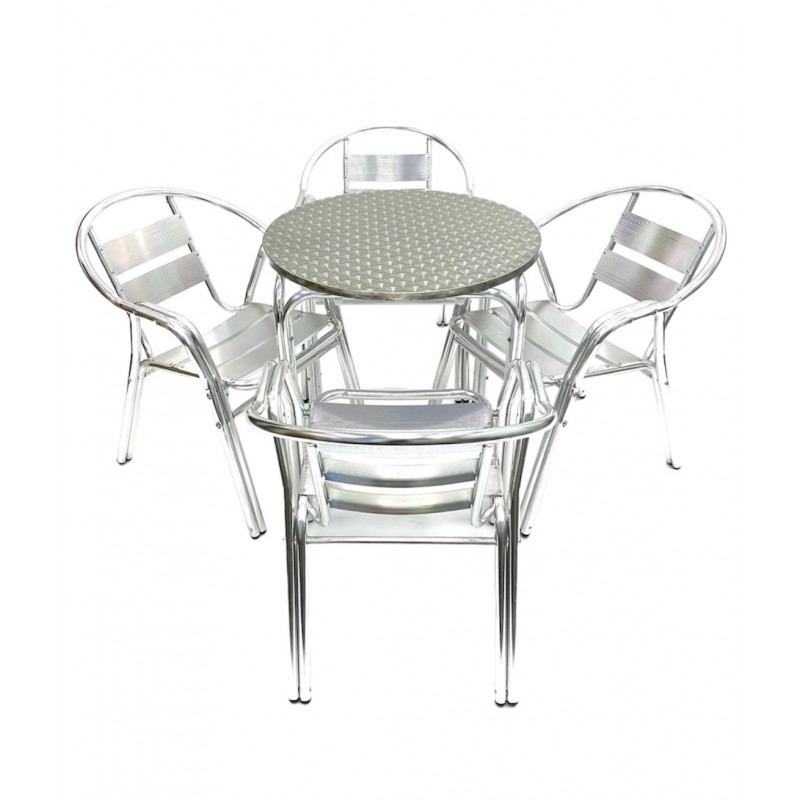 Our premium quality Aluminium Garden Set comprising of one 70cm round aluminium bistro table and four of the premium double tube aluminium chairs.