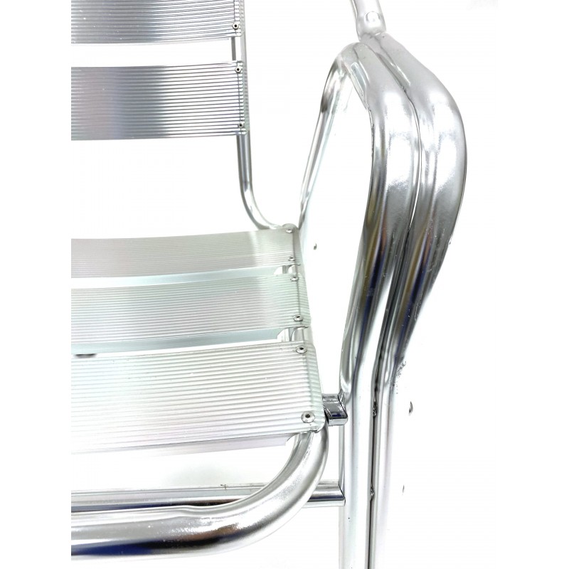 These aluminium bistro chairs are suitable for use in the garden or for cafe’s, fish & chip shops, large sporting events, festivals and restaurants etc. They have plastic feet to prevent scratching the floor. The seat height is 43 cm and they stack tightly for storage.