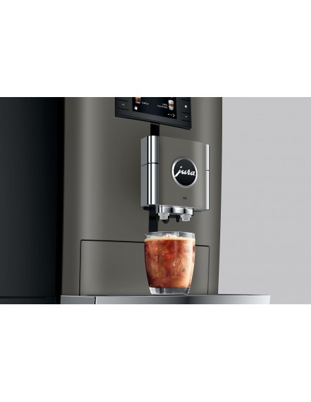 The X10 brings refreshing coffee enjoyment to offices and self-service areas with a selection of Cold Brews. Freshly ground at the touch of a button, not encapsulated and cold extracted. This is made possible by the Cold Extraction Process developed by JURA. In this extraction process, cold water passes through the freshly ground coffee, pulsating under high pressure and with a slow cycle frequency. The fruity aromas are thus optimally absorbed by the water and result in a natural and energising cold beverage.