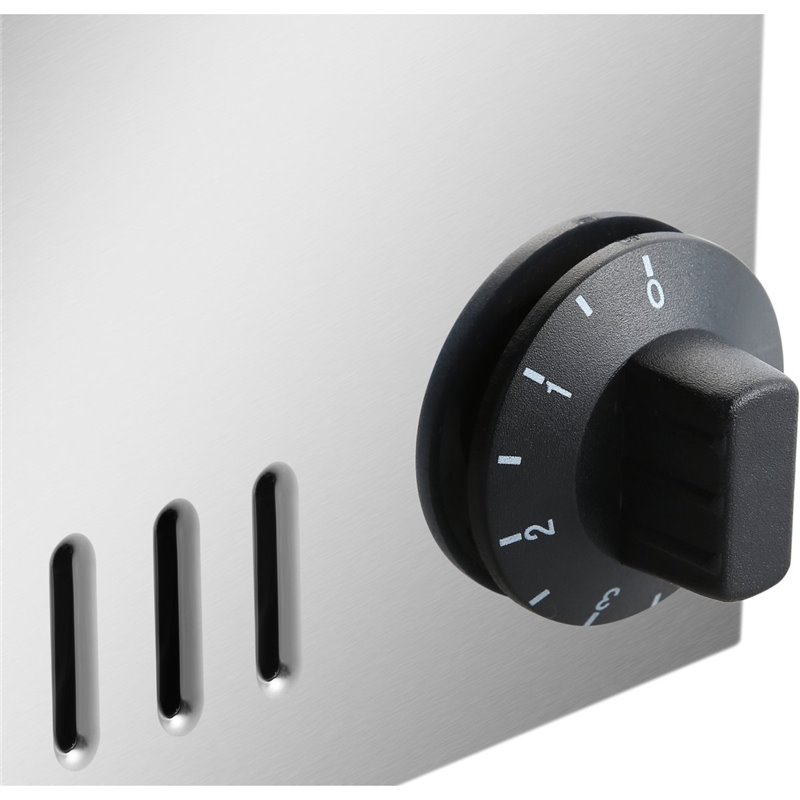 Commercial toaster with 4 slots. For professional catering use in restuarants, hotels or cafés. A traditional favourite of any breakfast menu, toast is fast and easy to make, whilst also being a great way to cross sell other products on your menu such as tea, coffee or chilled fruit juices.