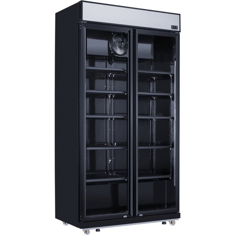 Commercial Bottle cooler Upright 773 litres Fan cooling Twin hinged doors Black Canopy Light | Stalwart DA-LG805BBLACK