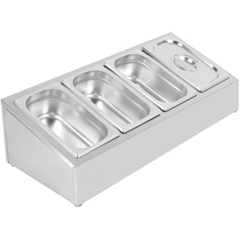 Commercial Condiment Holder including 4xGN1/4-100mm containers with lid Stainless steel | Stalwart DA-CHE04A