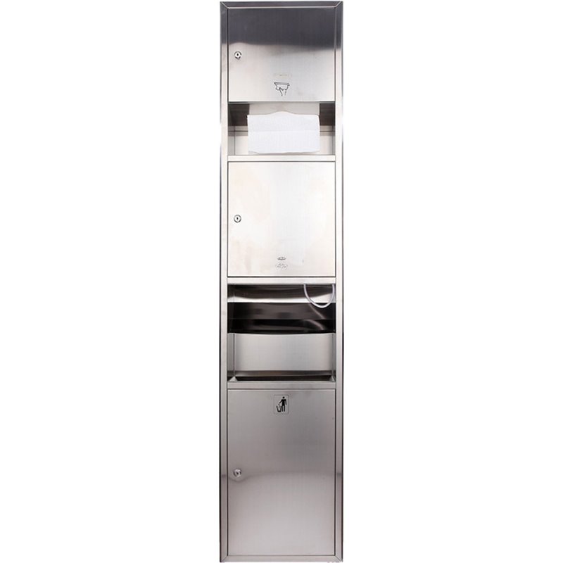Our Stainless steel paper towl and hand dryer station is the perfect solution for busy public washrooms. Featuring a paper towel dispenser, hand dryer and waste bin, this unit is ideal for all public wsahrooms.