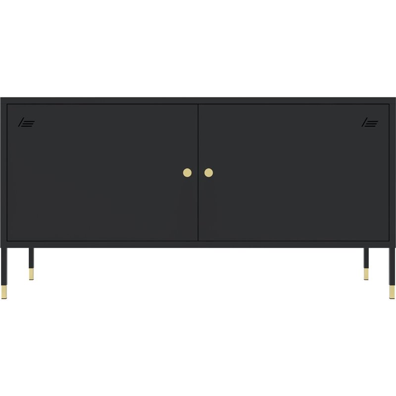 This steel TV cabinet stand with 2 swing doors features a sleek black design with gold accents. The ideal addition to your living space at this bargain pice!