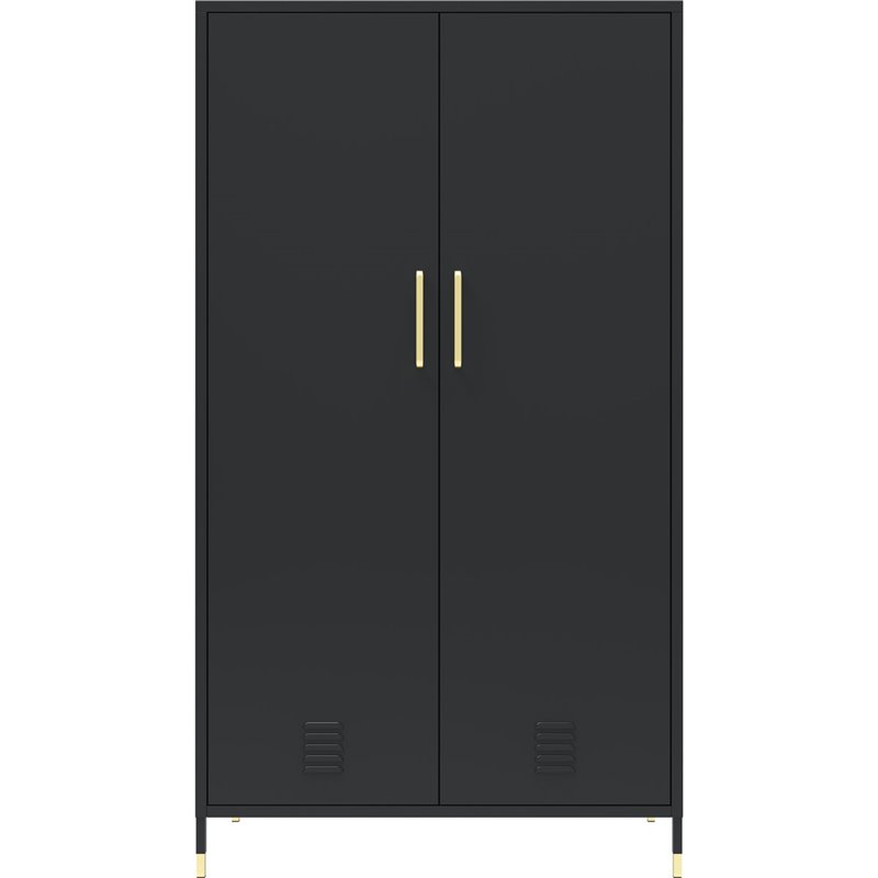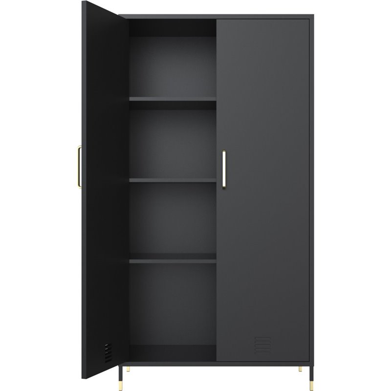 This steel storage cabinet with 3 interior shelves features a sleek black design with gold accent handles. The ideal addition to your bedroom or dressing room at this bargain price!