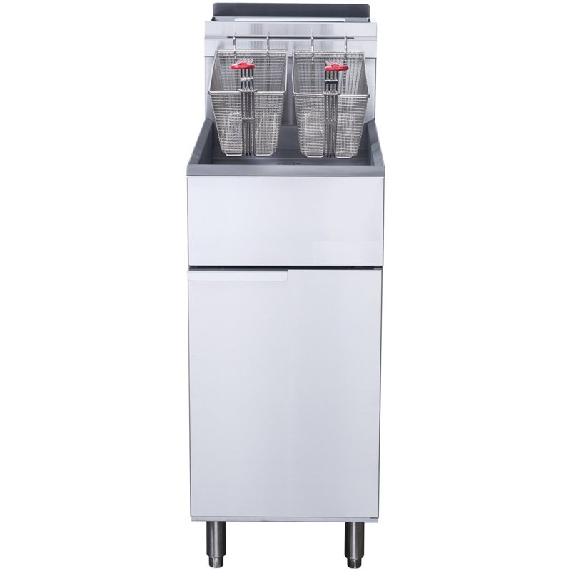 Heavy duty upright fryer perfect for bulk frying of large quantities of fries. Its high output, solid stainless steel construction and powerful gas burners makes this unit a great choice for busy chip shops, restaurants, bars, or for other high-volume catering applications. Whether youre cooking fish, chips, onion rings or chicken, these high output fryer makes it much easier to keep up with demand.