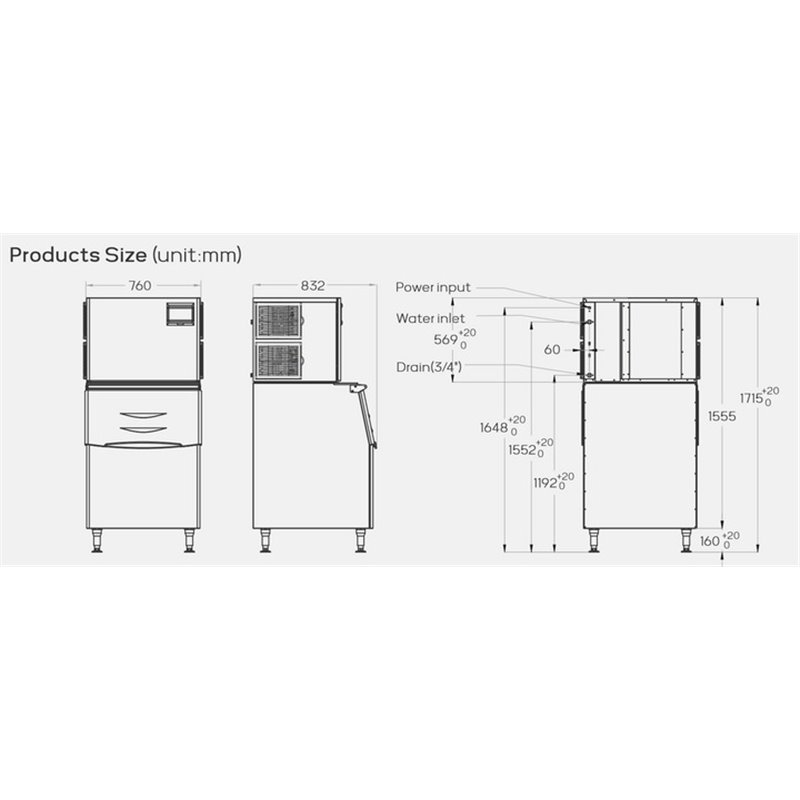 DIMENSIONS: 760 x 832 x 1715 mm