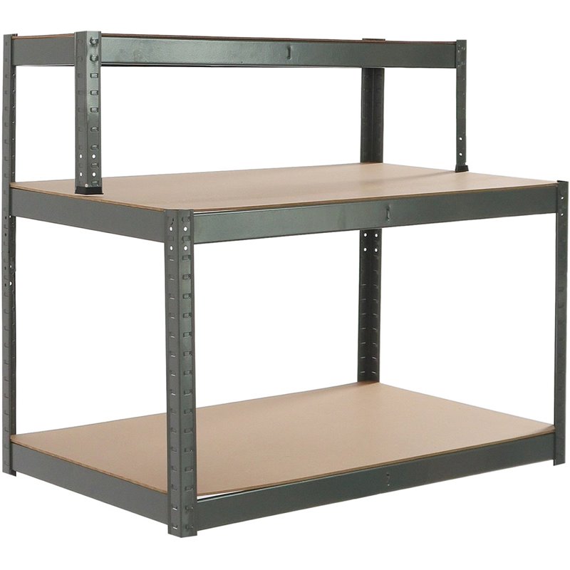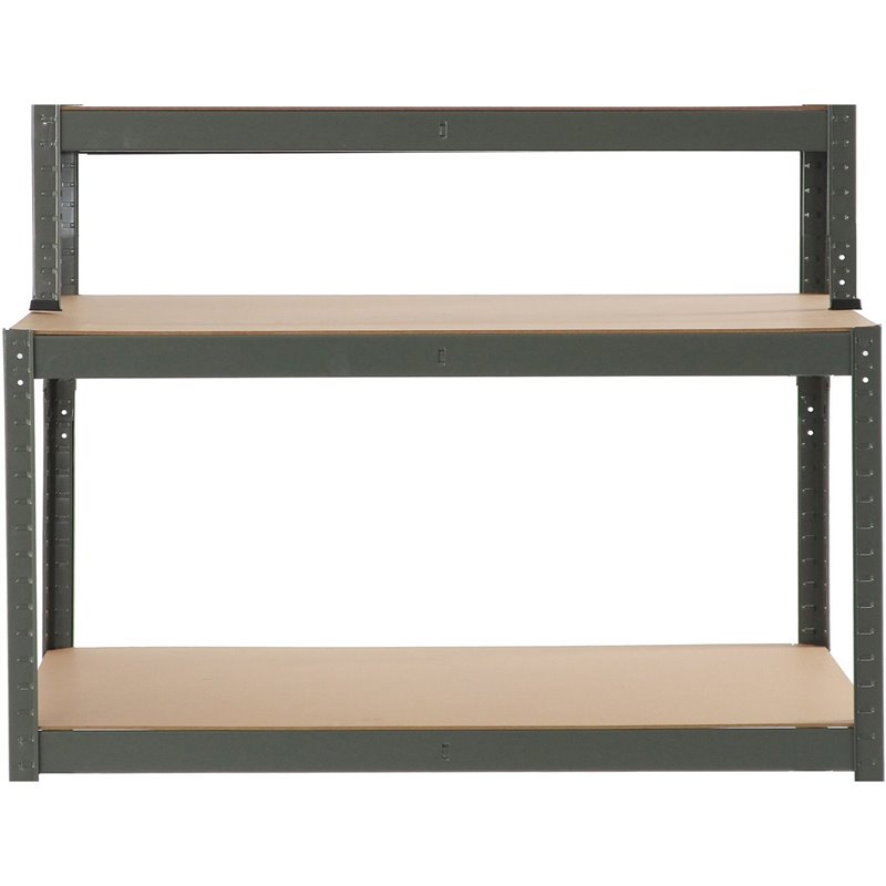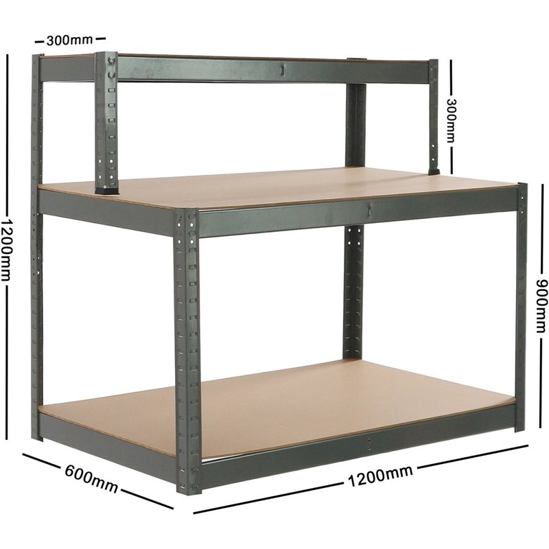 This heavy duty commercial work bench unit with overshelf is perfect for garages, workshops, storage areas, warehouses, restaurant kitchens or any empty wall where some extra storage would be useful. Powder coated grey, this industrial-grade unit has a loading capacity of 265kg per shelf.