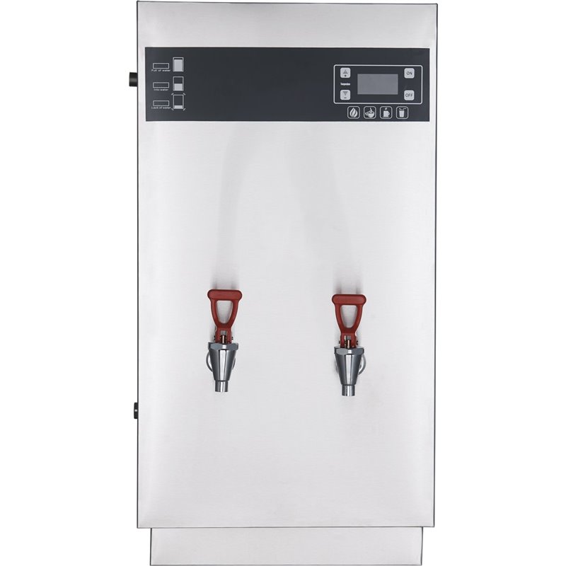 A professional 40 litre water boiler. Featuring a digital display and adjustable temperature, this commercial automatic fill water boiler is ideal for front of house use in restaurants, cafés, hotels or anywhere that requires a reliable source of piping hot water on tap.