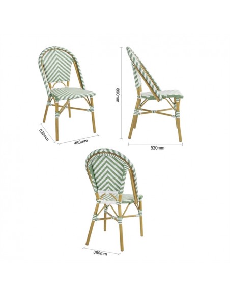 Bolero Parisian Style Rattan Side Chair Light Green (Pack of 2)