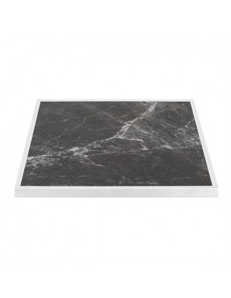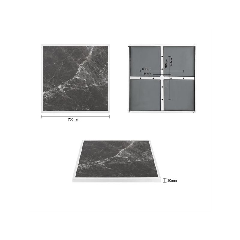 Bolero Dark Granite Effect Outdoor Tempered Glass Table Top White Trim 700mm