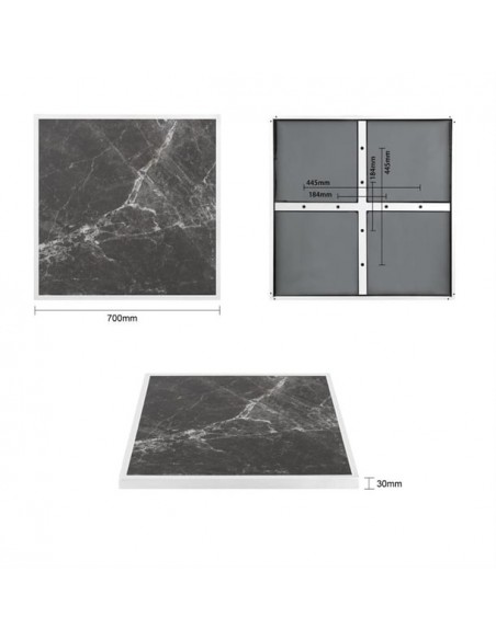 Bring a sleek, contemporary look to your restaurant, bistro or cafe with this square tempered glass tabletop from Bolero. Measuring 700mm x 700mm in size, it's perfect for use as a table for two or as a compact addition to a cosy dining area. The tabletop comes supplied pre-drilled for easy attachment to Bolero's range of table bases and features no dirt traps, so it can be wiped cleaned quickly between services. Its stylish dark granite-effect surface is both stain and scratch resistant, ensuring durability and easy maintenance.
