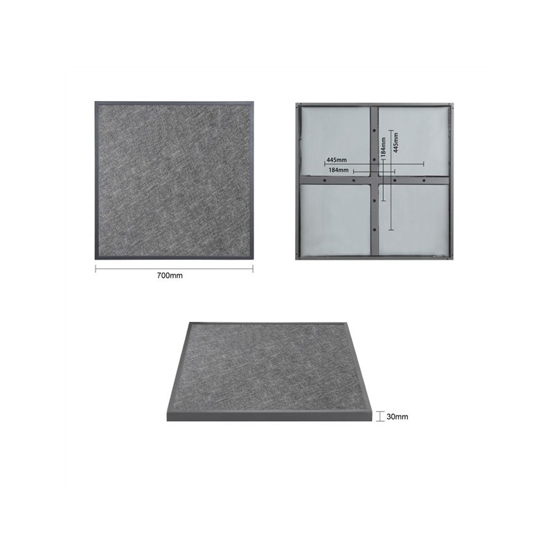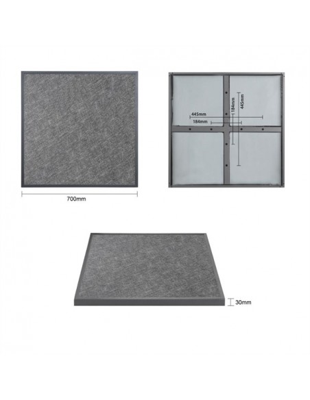 Bolero Black Brushed Mix Outdoor Tempered Glass Table Top Square Grey Trim 700mm