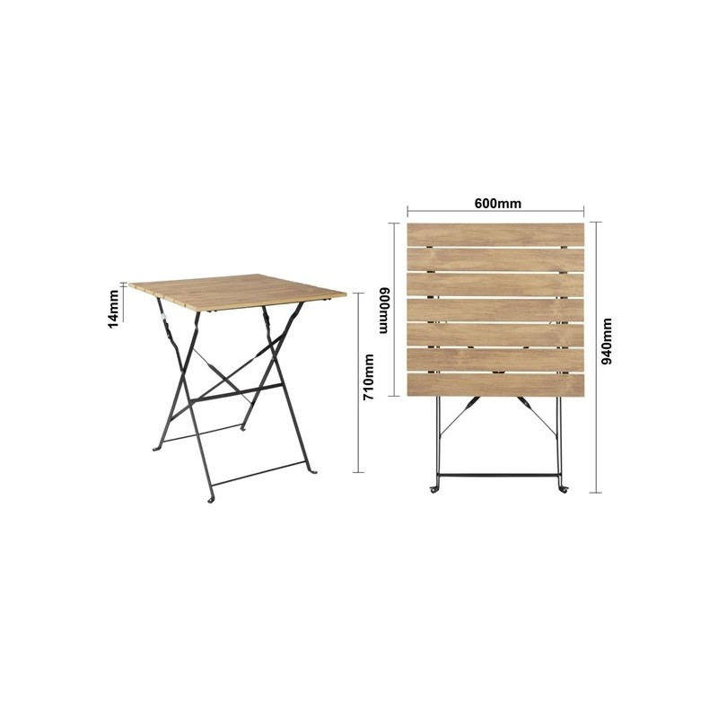 Combining the natural look of wood with the strength of metal, this wood-effect pavement table from Bolero's Perth range. Designed with a finish that resembles natural wood, the table benefits from a natural and modern look that's sure to spruce-up your seating areas.