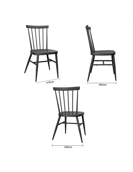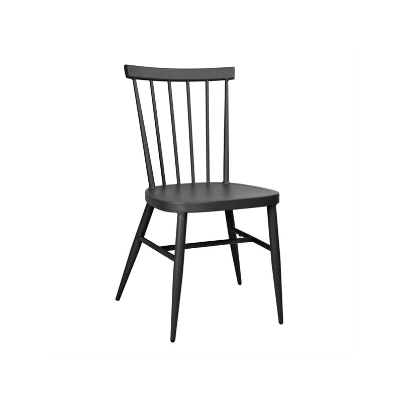 Bolero's Windsor chairs are built for everyday use in busy hospitality environments. Constructed from durable aluminium tubing with a black powder-coated finish, they offer both UV and scratch resistance. The chairs are practical, being lightweight and stackable for easy transportation and storage. They come with foot plugs to prevent floor scratches, ensuring versatility in placement.