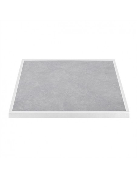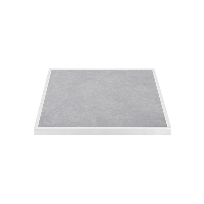 Bolero Light Grey Stone Effect Outdoor Tempered Glass Table Top White Trim 700mm