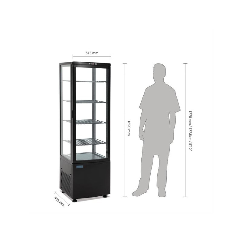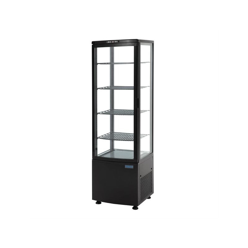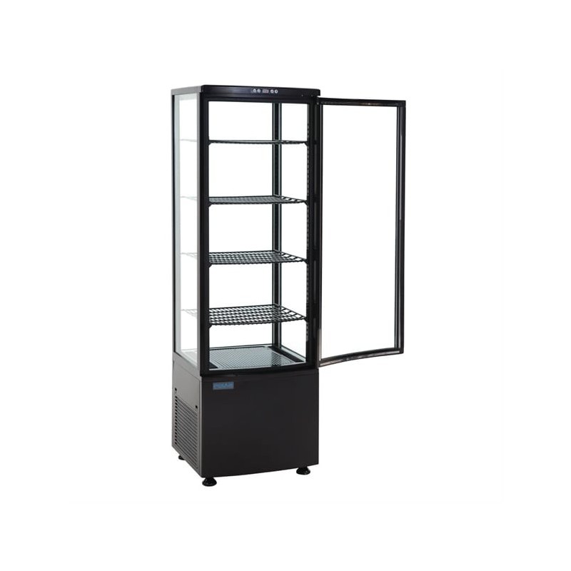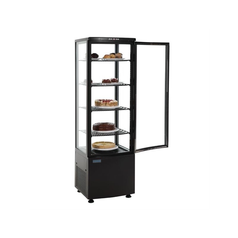 With full 4-sided visibility, internal energy-saving LED lighting and four sturdy adjustable shelves, the multi-level display provides impressive flexibility, allowing you to configure your display to suit the contents - whether that's tall desserts or canned/bottled drinks. The easy-access design allows the fridge to be positioned in either a self-service or assisted service location, so customers can easily help themselves if preferred. And thanks to the easy-clean design, the display chiller is exceptionally easy to maintain, freeing up valuable time for other tasks.