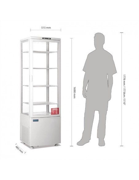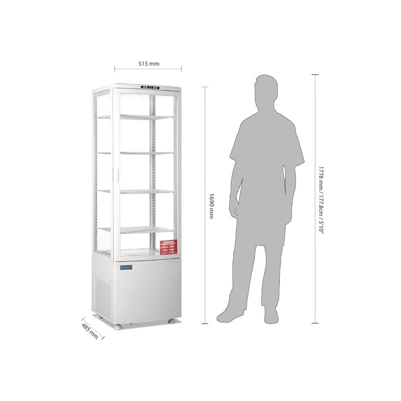 With full 4-sided visibility, internal energy-saving LED lighting and four sturdy adjustable shelves, the multi-level display provides impressive flexibility, allowing you to configure your display to suit the contents - whether that's tall desserts or canned/bottled drinks. The easy-access design allows the fridge to be positioned in either a self-service or assisted service location, so customers can easily help themselves if preferred. And thanks to the easy-clean design, the display chiller is exceptionally easy to maintain, freeing up valuable time for other tasks.
