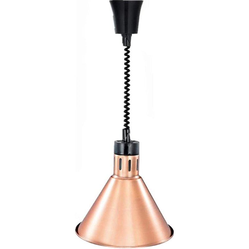 This ceiling mounted commercial heating lamp with retractable cord in silver is a reliable and stylish solution for hot holding food. Ideally suited for use on the pass or in self-service buffet areas, the lamp can easily be adjusted so that food is kept appealing and at the perfect serving temperature.
