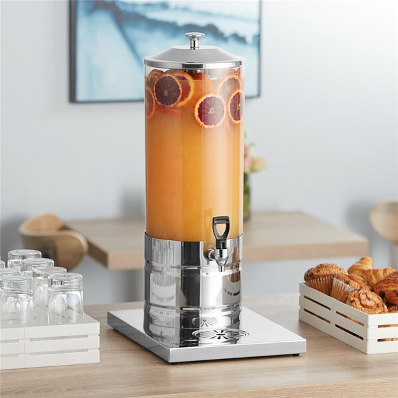 The beverage dispenser is ideal for serving tea, lemonade, ice water, or sangria at almost any event. With a generous 8L capacity, this beverage dispenser will minimize the time spent refilling, thus allowing your staff to focus on other important tasks. Simply place it at your beverage station, fill it, and let your customers enjoy the finest drinks you have to offer!