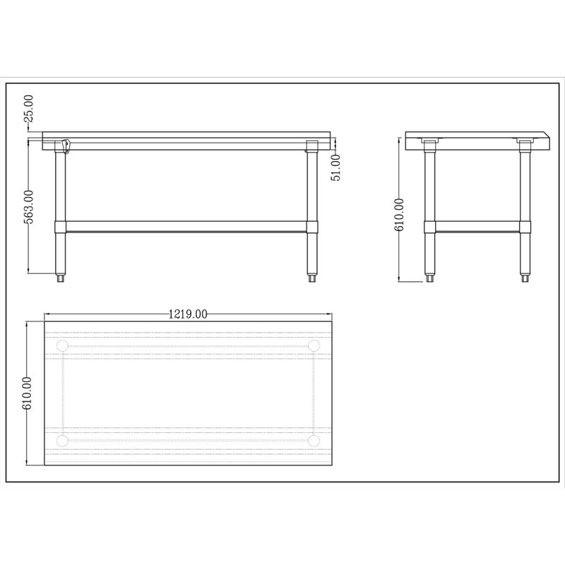 Commercial Equipment Stand / Low Height Table Stainless Steel Bottom shelf 3 Side Upstand 600x600x600mm | Stalwart DA- EES2424