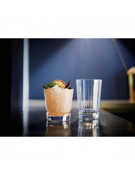 Inspired by Art Deco patterns and motifs, these Arcoroc Bourbon Street hiball glasses boast clean, straight-cut lines and sparkling clarity. The heavy and thick bottom gives the glasses a strong character and ensures exceptional stability. With a versatile 360ml capacity, they're perfect for both mixed drinks and neat whiskey - on the rocks or not. Plus, these glasses are dishwasher safe for effortless cleaning.