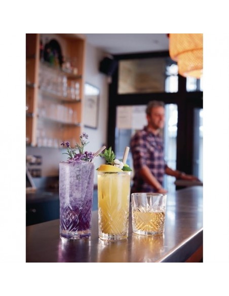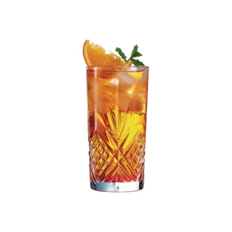 Embrace the vintage vibe with Arcoroc's Broadway hiball glasses! These timeless glasses take you back in time with a retro design, enhanced by the sparkling shine of "Ultra Transparent" glass technology. Perfect for speakeasies or trendy bars, they capture the vintage bar trend with elegance. The flame-polished finish adds a touch of luxury, while the cut embossment elevates the look even further. And for effortless cleaning, these Broadway hiball glasses are professional dishwasher safe.