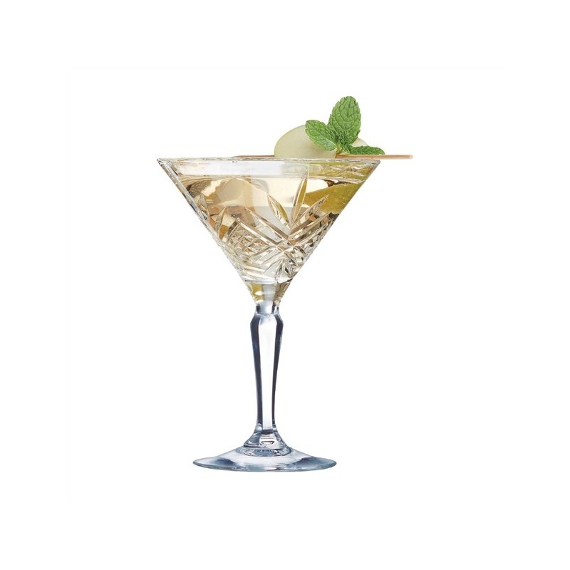 Embrace the vintage vibe with Arcoroc's Broadway martini/cocktail glasses! These timeless glasses take you back in time with a retro design, enhanced by the sparkling shine of "Ultra Transparent" glass technology. Perfect for speakeasies or trendy bars, they capture the vintage bar trend with elegance. The flame-polished finish adds a touch of luxury, while the cut embossment elevates the look even further. And for effortless cleaning, these Broadway martini/cocktail glasses are professional dishwasher safe.