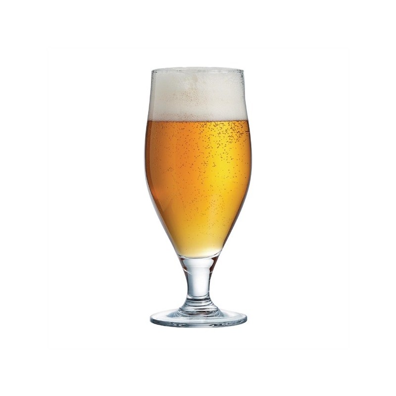 Arcoroc's Cervoise stemmed beer glasses offer a sophisticated way to enjoy premium lagers. The elegant stem and bowl elevate the presentation, perfect for serving craft beers and ciders 'the continental way'. Crafted from soda-lime glass for clarity and durability, these Cervoise beer glasses feature a wide foot for stability and are dishwasher safe for convenient cleaning.