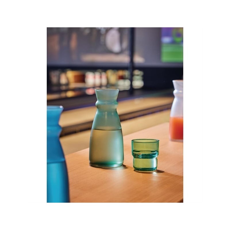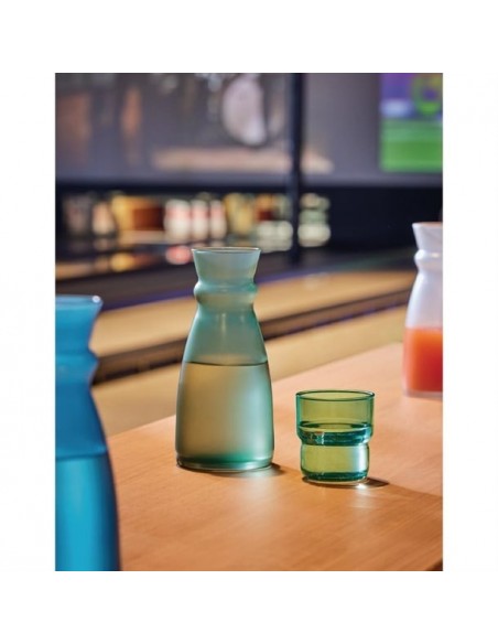 Arcoroc's Fluid carafes are built for both function and style. Their ergonomic design allows for easy handling during service, and the natural gauge makes it simple to fill them to the perfect level. The heavy base ensures excellent stability on the table or when carried on a tray. Crafted from soda-lime glass in a frosted green finish, these Fluid carafes are highly durable and are designed to last through 2,000 dishwasher cycles without showing wear.