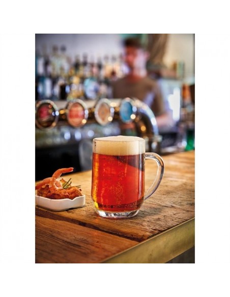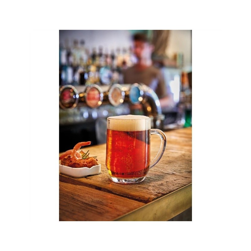 Bring a traditional touch to your drinks service with this "Mancunian" style beer tankard from Arcoroc's Haworth collection. With a simple and refined appearance, it makes it an unimposing choice for beer, but equally a fun glass for cocktails and many other drinks. Made from soda-lime glass, the tankard is dishwasher safe for quick and easy cleaning.