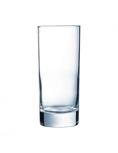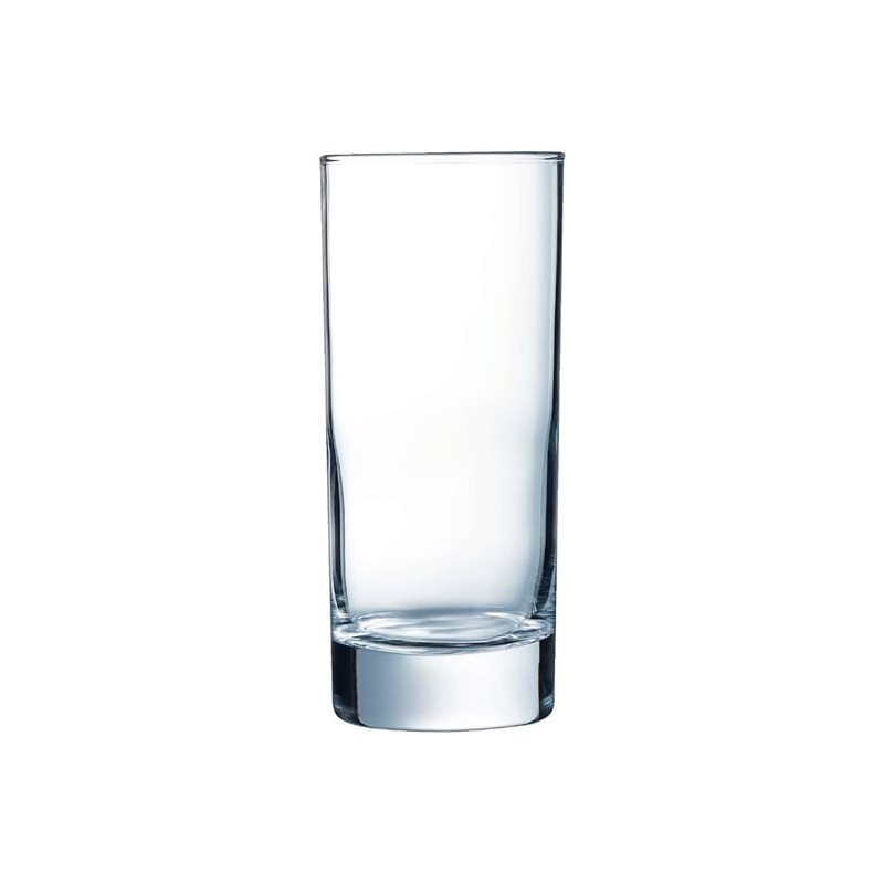 Arcoroc's Islande hiball glasses bring a fresh, modern vibe to any table setting. A must-have for restaurants, bars, and even home entertaining, these Islande glasses boast a slender, elegant design perfect for showcasing spirits, cocktails, or even soft drinks and beers. The sleek lines are complemented by a weighted base, creating a chic and sophisticated look that elevates any beverage.