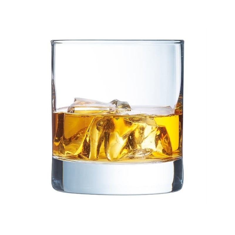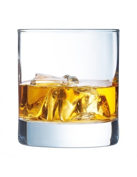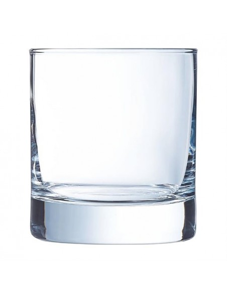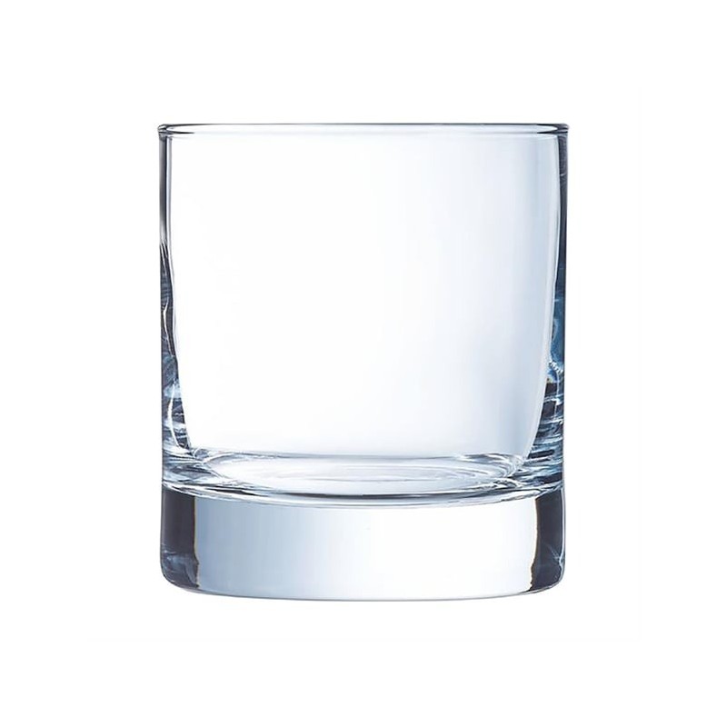 Arcoroc's Islande old-fashioned glasses bring a fresh, modern vibe to any table setting. A must-have for restaurants, bars, and even home entertaining, these Islande glasses boast a slender, elegant design perfect for showcasing spirits, cocktails, or even soft drinks and beers. The sleek lines are complemented by a weighted base, creating a chic and sophisticated look that elevates any beverage.