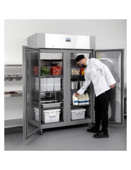 With a vast 1400 litre capacity (980Ltr usable), the Polar U-Series upright double door refrigerator offers the ideal solution for restaurants looking to store huge amounts of ingredients with minimal power consumption.