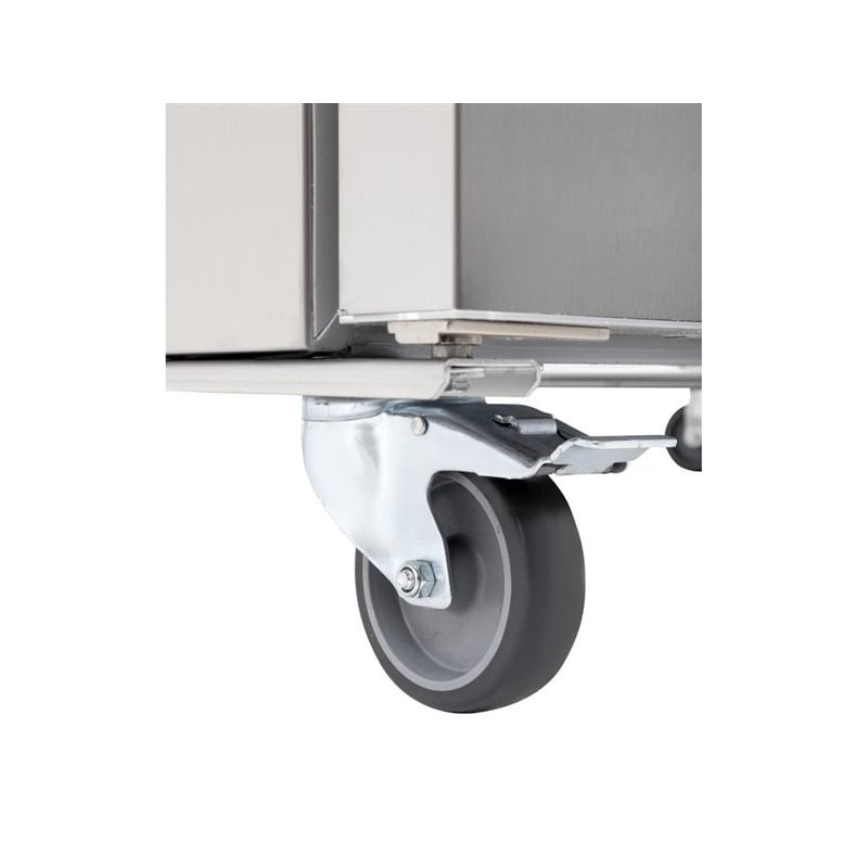 For security, the refrigerator's double doors are lockable, and thanks to heavy-duty castors, positioning the Polar U-Series fridge for cleaning becomes a breeze.