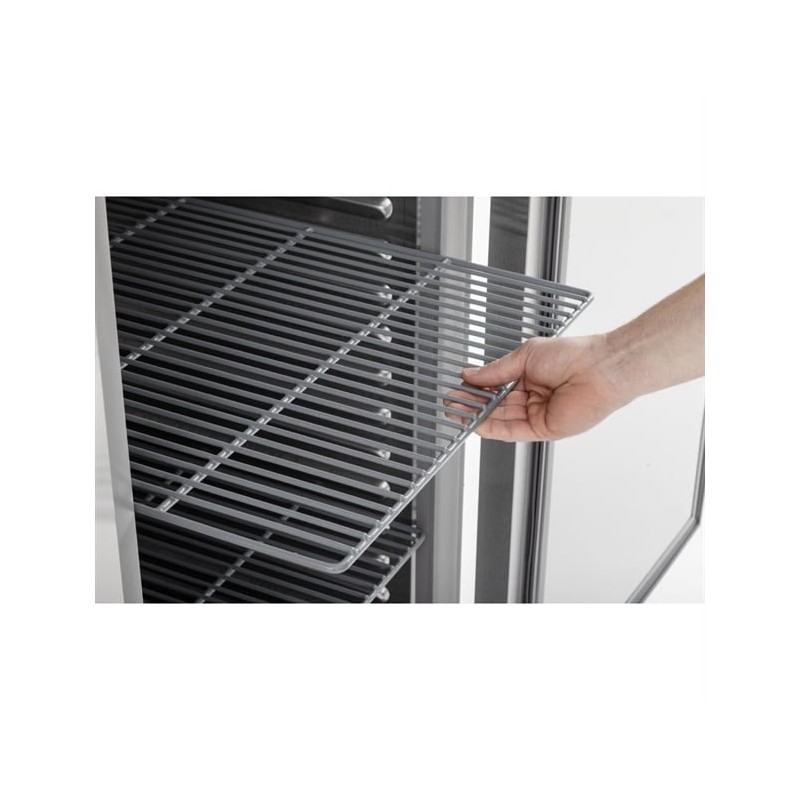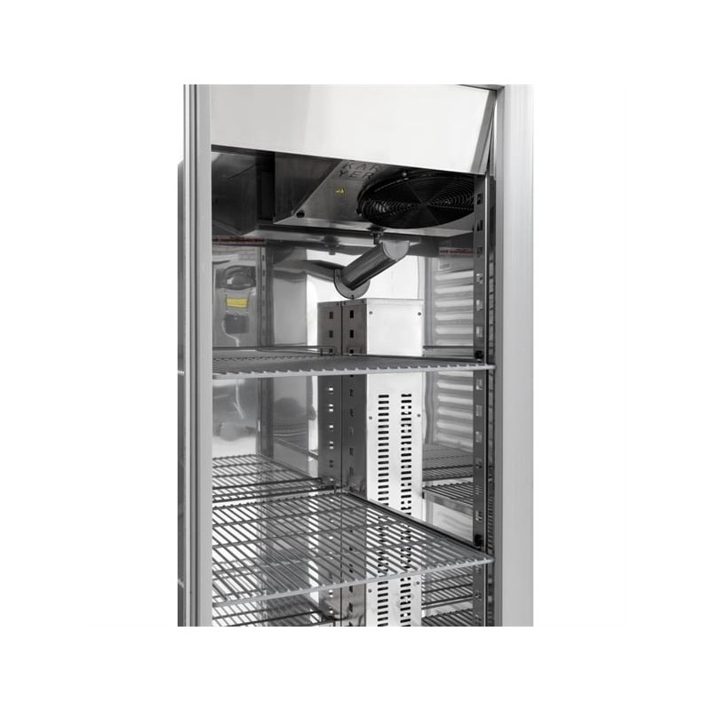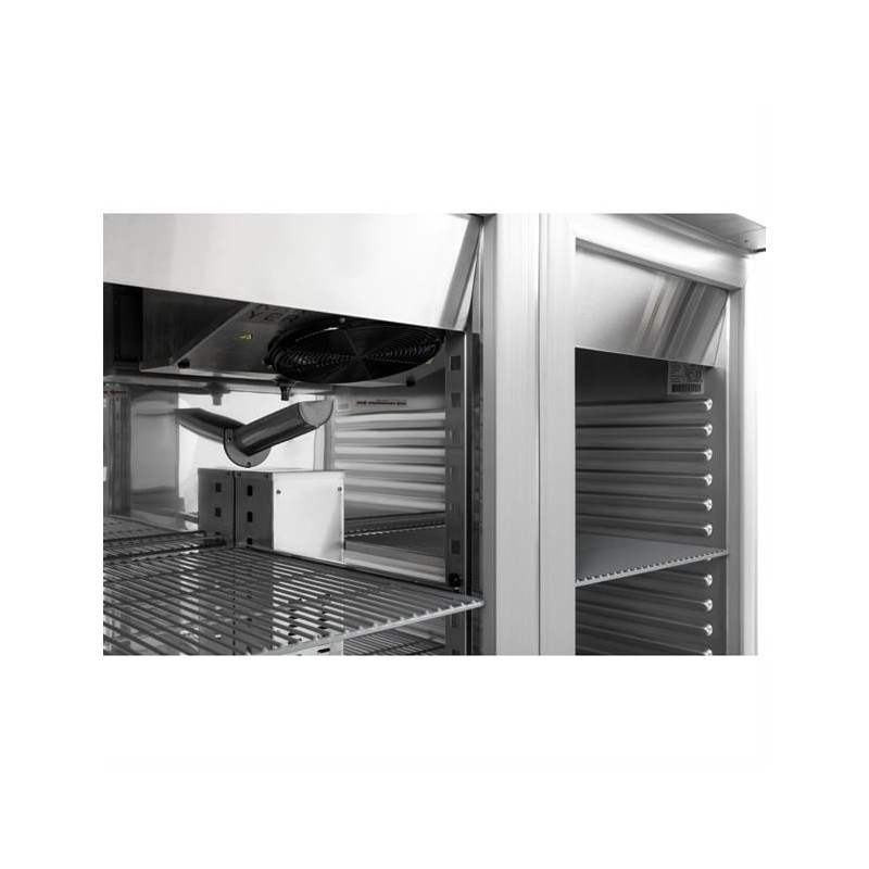 The U-Series refrigerator has stainless steel construction inside and out, and features pressed stainless steel side panels eliminating the need for extra shelf runners. With 52 shelf positions at 5cm intervals, the fridge maximises your storage flexibility. And for further convenience, 1/1 or 2/1 sized gastronorm trays can be hung on the runners without the need for extra shelves.