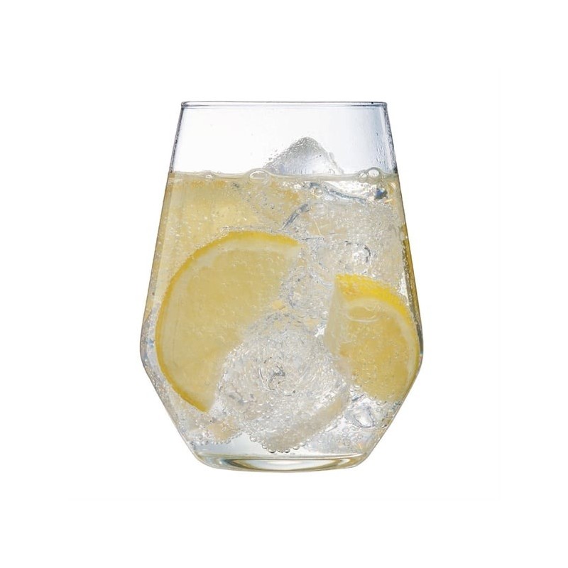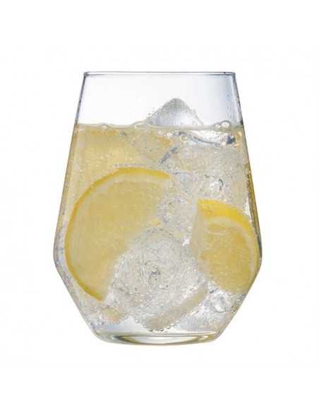 Vina Juliette hiball tumblers offer a versatile design for commercial use. Made from extra-resistant tempered glass, their wide, geometric bowl comfortably holds a wide variety of drinks, from cocktails to juices. The rim is cold cut, using Sheer Rim Technology, meaning the rim is extremely fine, resulting in more comfort on the lips. These Vina Juliette glasses also benefit from a flat and stable foot which help prevent spills and are dishwasher safe for easy cleaning.