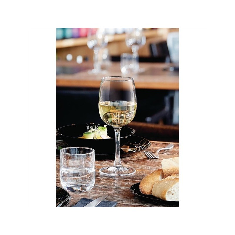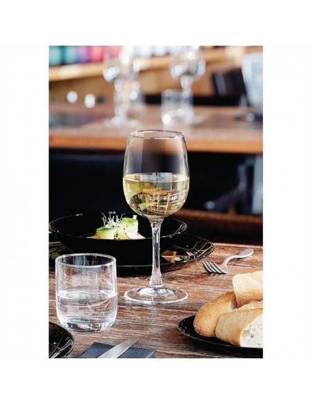 Arcoroc's Vina wine glasses offer a well-rounded and stylish solution for everyday table service. Made from extra-resistant tempered glass, their wide, geometric bowl enhances the taste and aroma of many different wines. The rim is cold cut, using Sheer Rim Technology, meaning the rim is extremely fine, resulting in more comfort on the lips. These Vina wine glasses also benefit from a flat and stable foot which help prevent spills and are dishwasher safe for easy cleaning.