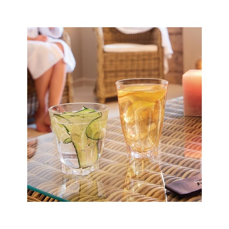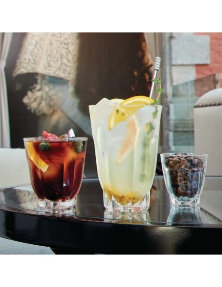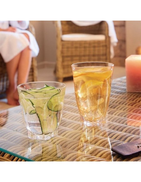 Introduce practical and stylish additions to your drink services with these 350ml Arcoroc tumblers. Thanks to their panelled design, these tumblers benefit from a classic look that's ideal for any bar setting. And as they can be nested together, the Arcoroc tumblers help to save your storage space in your cupboards. Plus, the tumblers are made from tempered glass that provides excellent resistance against thermal shock, scratches and chips.
