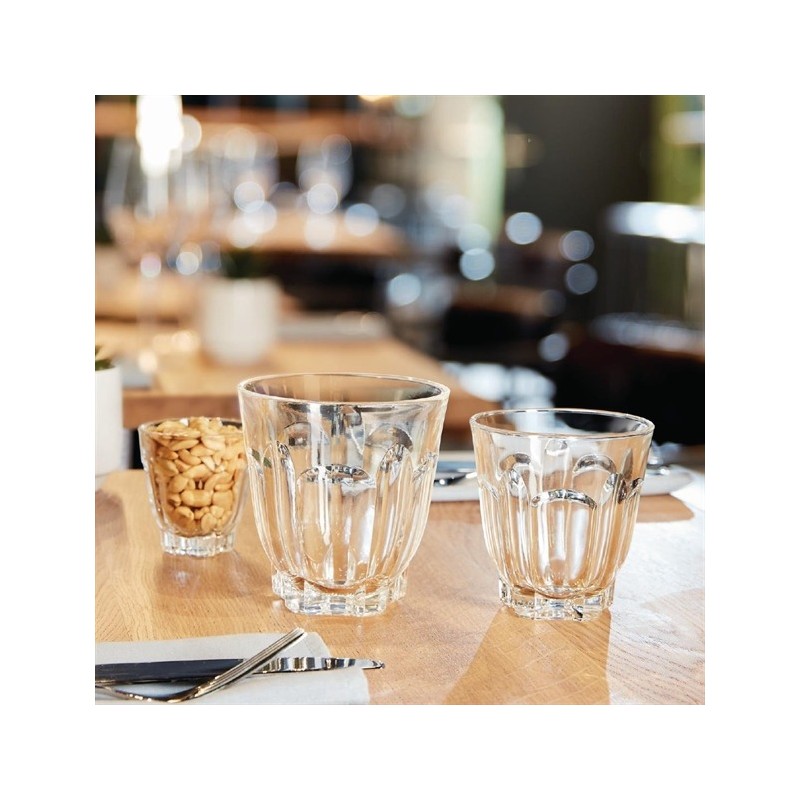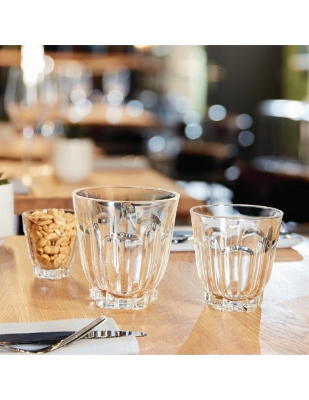 Introduce practical and stylish additions to your drink services with these 240ml Arcoroc tumblers. Thanks to their panelled design, these tumblers benefit from a classic look that's ideal for any bar setting. And as they can be nested together, the Arcoroc tumblers help to save your storage space in your cupboards. Plus, the tumblers are made from tempered glass that provides excellent resistance against thermal shock, scratches and chips.
