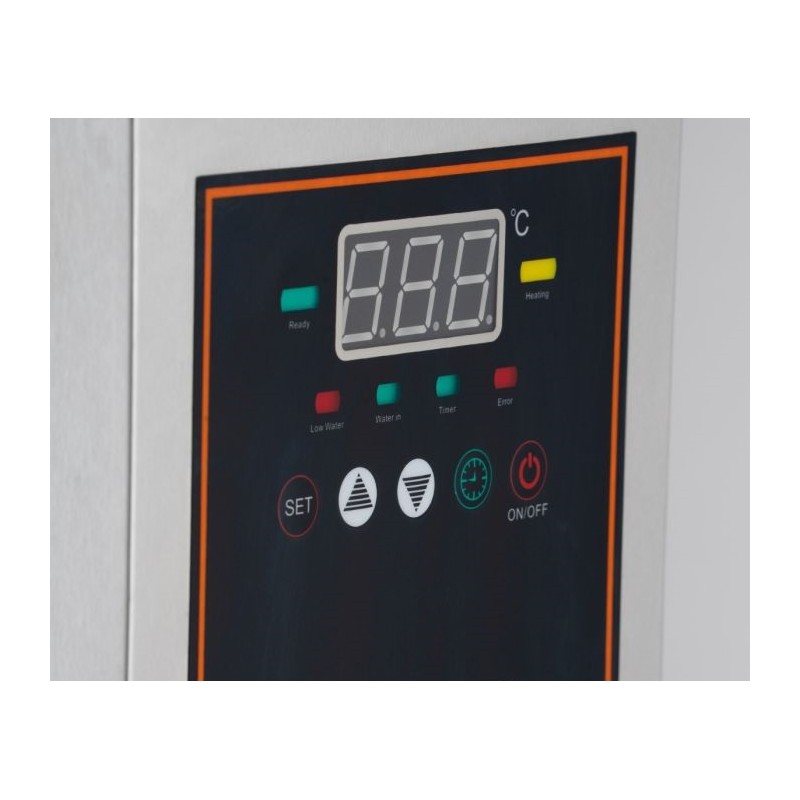 Despite its performance, this unit is just 180mm wide, making it perfect for space-conscious front-of-house areas. The digital touchscreen control panel allows for precise temperature adjustment, making it especially useful for serving speciality teas and drinks at optimal temperatures.