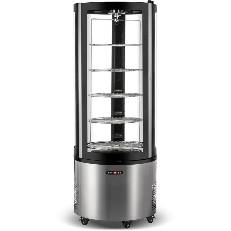A very elegant professional, rotating, refrigerated display unit. Perfect for displaying chilled merchandise such as pastries, cakes and snacks. This discount fridge is great value for money and a must have fridge for any café, shop, restaurant or bakery.